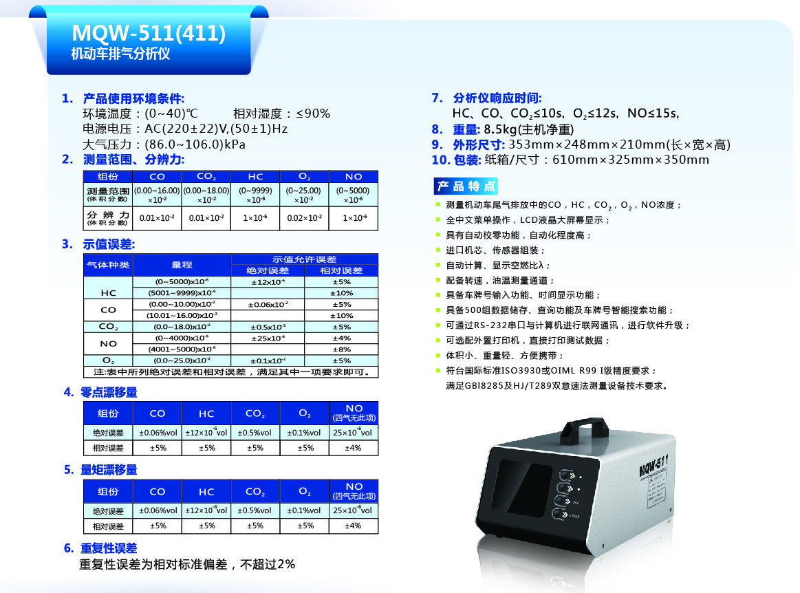 CO: ±0.03 ×10-2 (%)(絕對(duì)誤差)或±5%(相對(duì)誤差)