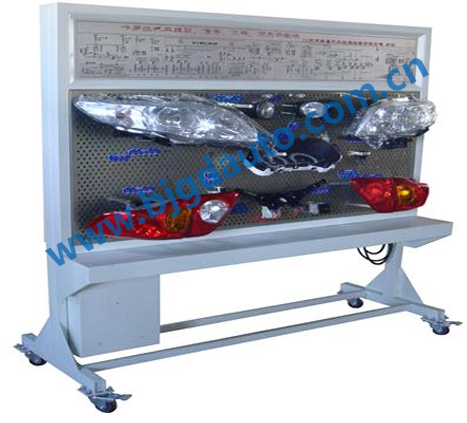 設(shè)備采用原車燈光照明系統(tǒng)器件組成,包括:組合儀表、大燈、小燈、霧燈、轉(zhuǎn)向燈、剎車燈、倒車燈、牌照燈、大燈開關(guān)、變光/轉(zhuǎn)向開關(guān)、應(yīng)急開關(guān)、霧燈開關(guān)、剎車開關(guān)、倒車開關(guān)、點(diǎn)火開關(guān)、轉(zhuǎn)向燈繼電器等。外加系統(tǒng)主要包括: 故障設(shè)置系統(tǒng)、故障顯示裝置、檢測端子以及安全防護(hù)裝置等。本臺架可以完整展示燈光照明系統(tǒng)的組成、結(jié)構(gòu)和工作原理,可以進(jìn)行燈光照明系統(tǒng)常見故障的模擬、診斷和檢測實(shí)操訓(xùn)練,提高學(xué)生分析和解決實(shí)際問題的能力,適合中高等汽車院校與培訓(xùn)機(jī)構(gòu)對學(xué)員進(jìn)行車身電器系統(tǒng)的教學(xué)需要。