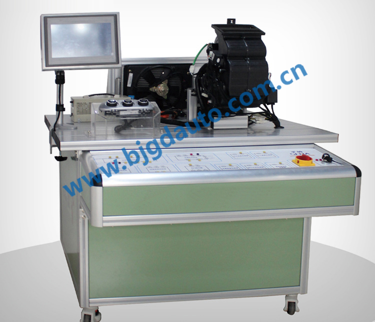 本實(shí)訓(xùn)臺(tái)采用鋁型材制作,原車配件組裝調(diào)試而成,可直觀、清楚、方便的展現(xiàn)了純電動(dòng)汽車空調(diào)的工作過(guò)程及原理。此實(shí)訓(xùn)臺(tái)與傳統(tǒng)汽車空調(diào)系統(tǒng)不同的是空調(diào)壓縮機(jī)直接靠電力驅(qū)動(dòng),通過(guò)電力驅(qū)動(dòng)帶動(dòng)壓縮機(jī)工作,暖風(fēng)使用電加熱,可快速供暖,從而可調(diào)節(jié)車內(nèi)的環(huán)境溫度,提高舒適度。