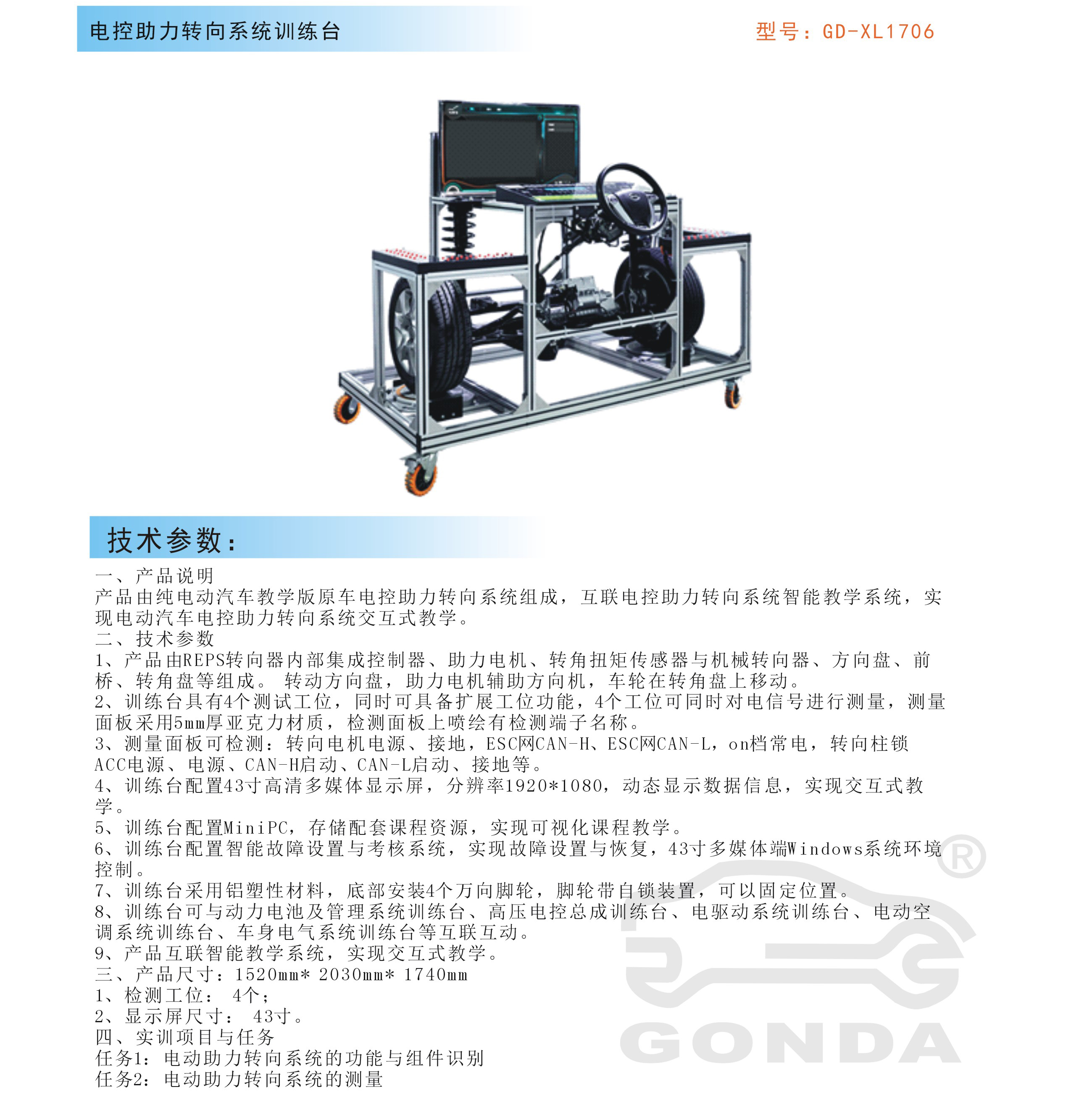 產(chǎn)品名稱:電控助力轉(zhuǎn)向系統(tǒng)實(shí)訓(xùn)臺