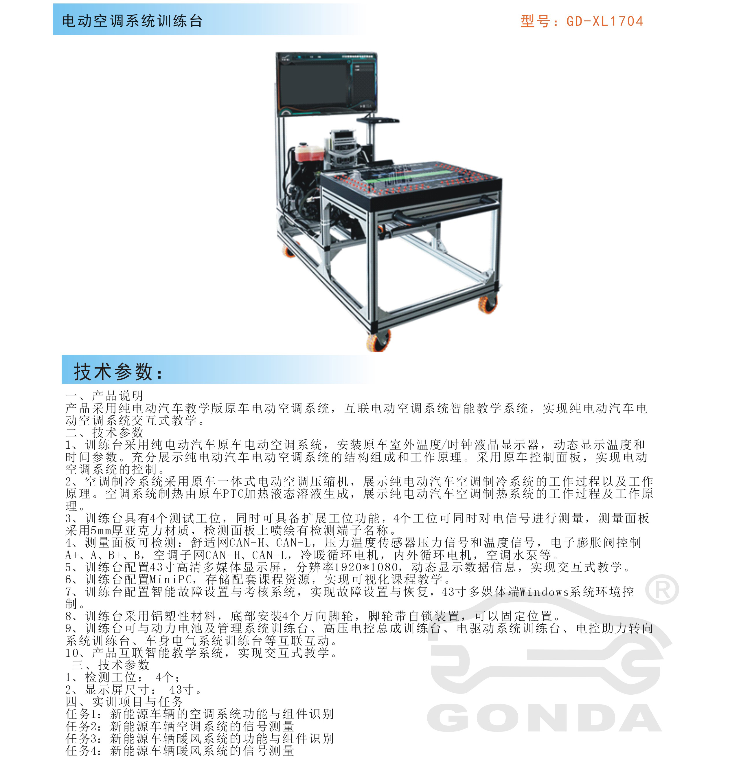 產(chǎn)品名稱:新能源汽車電動空調(diào)系統(tǒng)實訓臺