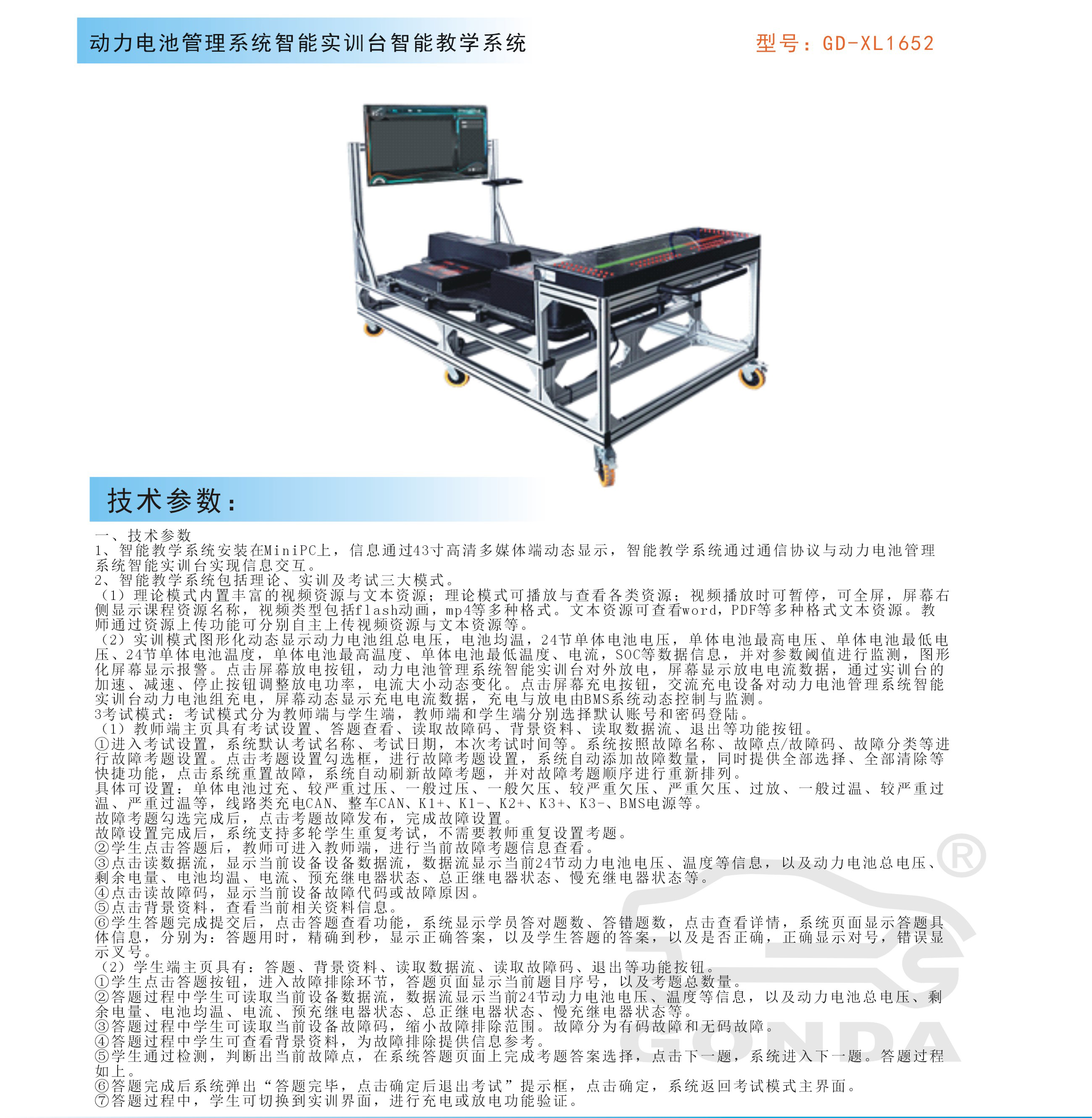 產(chǎn)品名稱:新能源汽車動力電池管理系統(tǒng)智能實(shí)訓(xùn)臺智能教