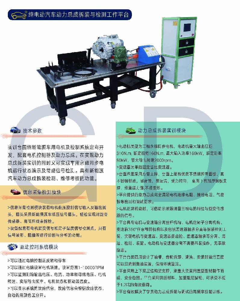 純電動(dòng)汽車動(dòng)力總成拆裝與檢測工作平臺