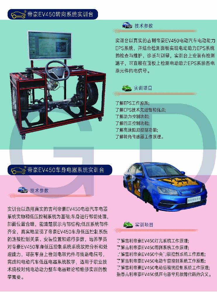 帝豪EV450轉(zhuǎn)向系統(tǒng)實(shí)訓(xùn)臺&車身電器系統(tǒng)實(shí)訓(xùn)臺