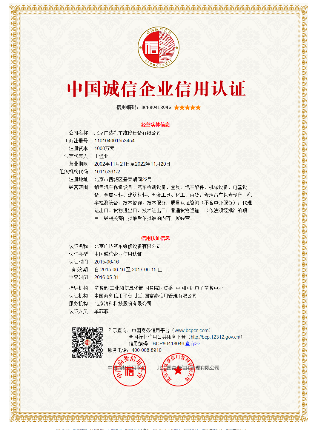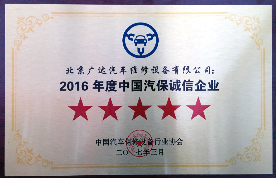 祝賀北京廣達(dá)榮獲“中國(guó)汽保誠(chéng)信企業(yè)”五星級(jí)