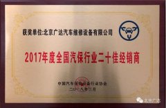 北京廣達(dá)蟬聯(lián)“2017年度全國汽保行業(yè)二十佳經(jīng)銷