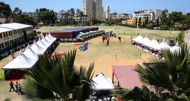 肯尼亞總統(tǒng)烏胡魯·肯雅塔、副總統(tǒng)威廉·魯托及肯教育部官員出席了貨物交接儀式;中國駐肯尼亞大使館參贊姚明和中航國際肯尼亞代表處副總代表蘇天舒作為中方代表參加了該儀式。此次交接的貨物包括汽車維修設(shè)備、機(jī)電一體化設(shè)備、焊接設(shè)備等。儀式結(jié)束后,貨物將被分頭運(yùn)往肯尼亞境內(nèi)20所大中專職業(yè)院校。